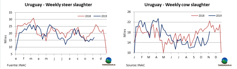 根據(jù)南方共同市場(chǎng)4個(gè)國(guó)家官方數(shù)據(jù)統(tǒng)計(jì),2019年前10個(gè)月南方共同市場(chǎng)4個(gè)國(guó)家牛屠宰量比2018年同時(shí)期減少25萬(wàn)頭。巴西上個(gè)月的數(shù)據(jù)只是暫時(shí)情況,在接下來(lái)幾周一定會(huì)有所增長(zhǎng),但這并不會(huì)扭轉(zhuǎn)牛只屠宰量的減少趨勢(shì)。數(shù)據(jù)表明,1月-10月,南方共同市場(chǎng)牛只屠宰量3518萬(wàn)頭,比2018年前10個(gè)月減少25萬(wàn)頭,肉類生產(chǎn)的減少量是6-7萬(wàn)噸。主要是巴西、巴拉圭和烏拉圭屠宰量有減少,部分抵消了阿根廷牛只屠宰量30萬(wàn)頭的增長(zhǎng)。