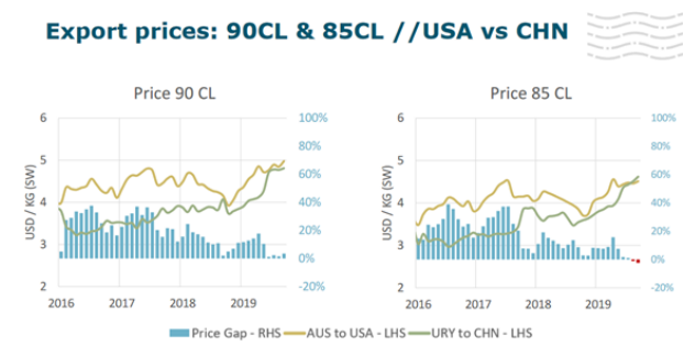 “2020年我們要將進(jìn)口集中在中美洲國(guó)家和墨西哥”一位進(jìn)口商在美周進(jìn)口肉類(lèi)委員會(huì)年度會(huì)議上說(shuō)。由于該會(huì)議與中國(guó)舉辦的進(jìn)博會(huì)時(shí)間沖突,來(lái)自澳洲和南美的出口商代表團(tuán)數(shù)量很少,來(lái)自烏拉圭的肉類(lèi)代表Las Piedra 和San Jacinto, Marfrig和Minerva多個(gè)國(guó)家的代表、以及貿(mào)易公司的代表參加了此次大會(huì)。會(huì)議上,烏拉圭肉協(xié)強(qiáng)調(diào)了牛肉到中國(guó)和美國(guó)的出口價(jià)格差異越來(lái)越小,澳洲牛肉到中國(guó)和美國(guó)的出口價(jià)格差異也越來(lái)越小,2019年差距已經(jīng)趨于零差距。甚至出口到中國(guó)的85CL和90CL產(chǎn)品價(jià)格開(kāi)始高于美國(guó)。出口商還提到了出口到中國(guó)的低成本、低門(mén)檻的問(wèn)題,2016年-2017年,美國(guó)采購(gòu)價(jià)格比中國(guó)高30%。