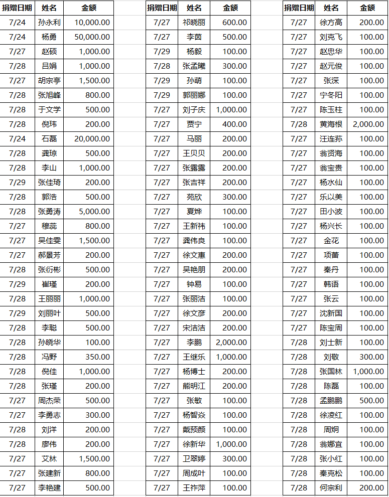 天災(zāi)無情,但壓不過泱泱大國(guó);暴雨肆虐,但敵不過眾志成城。短短兩天時(shí)間,公司及員工共募捐720750元,包括:北京泓睿國(guó)際貿(mào)易有限公司20萬,天津泓睿食品有限公司20萬,北京大壹統(tǒng)科技有限公司5萬,上海泓瑞食品有限公司5萬,上海金亥食品有限公司5萬,北京帕爾司電子商務(wù)有限公司5萬,員工自行及公司代捐款共計(jì)120750元。此款項(xiàng)已于第一時(shí)間匯入河南省抗洪救災(zāi)相關(guān)賬戶。