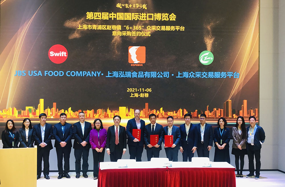 巴西集團(tuán)美國公司的JBS SWIFT與北京泓睿&上海泓瑞食品有限公司和上海眾采企業(yè)發(fā)展有限公司簽約,共涉及9000萬美金的采購意向訂單。