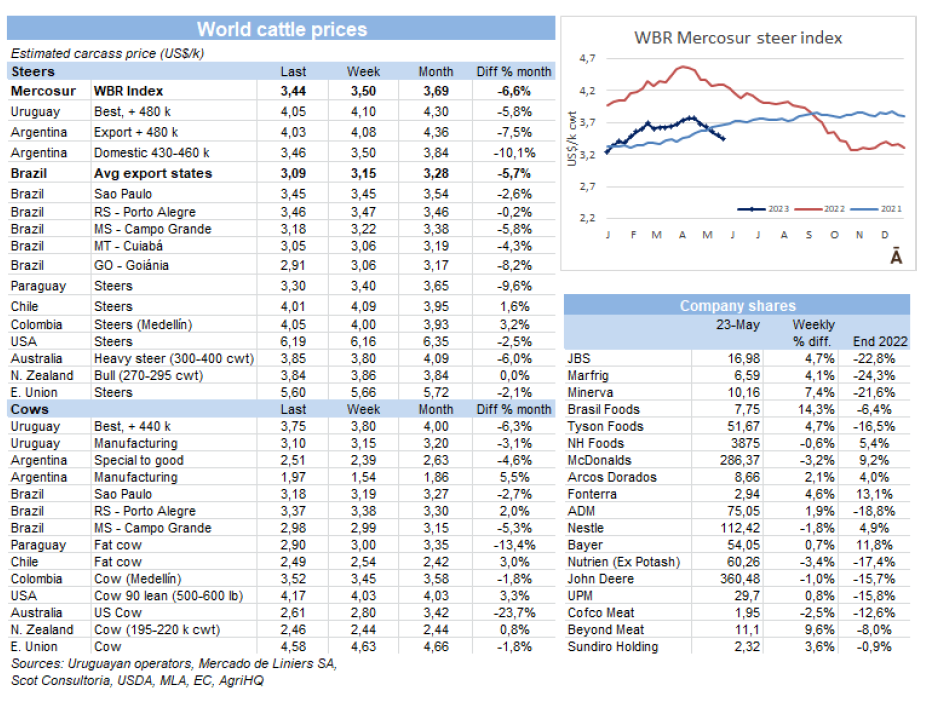 南方共同市場(chǎng)的閹牛指數(shù)持續(xù)下跌