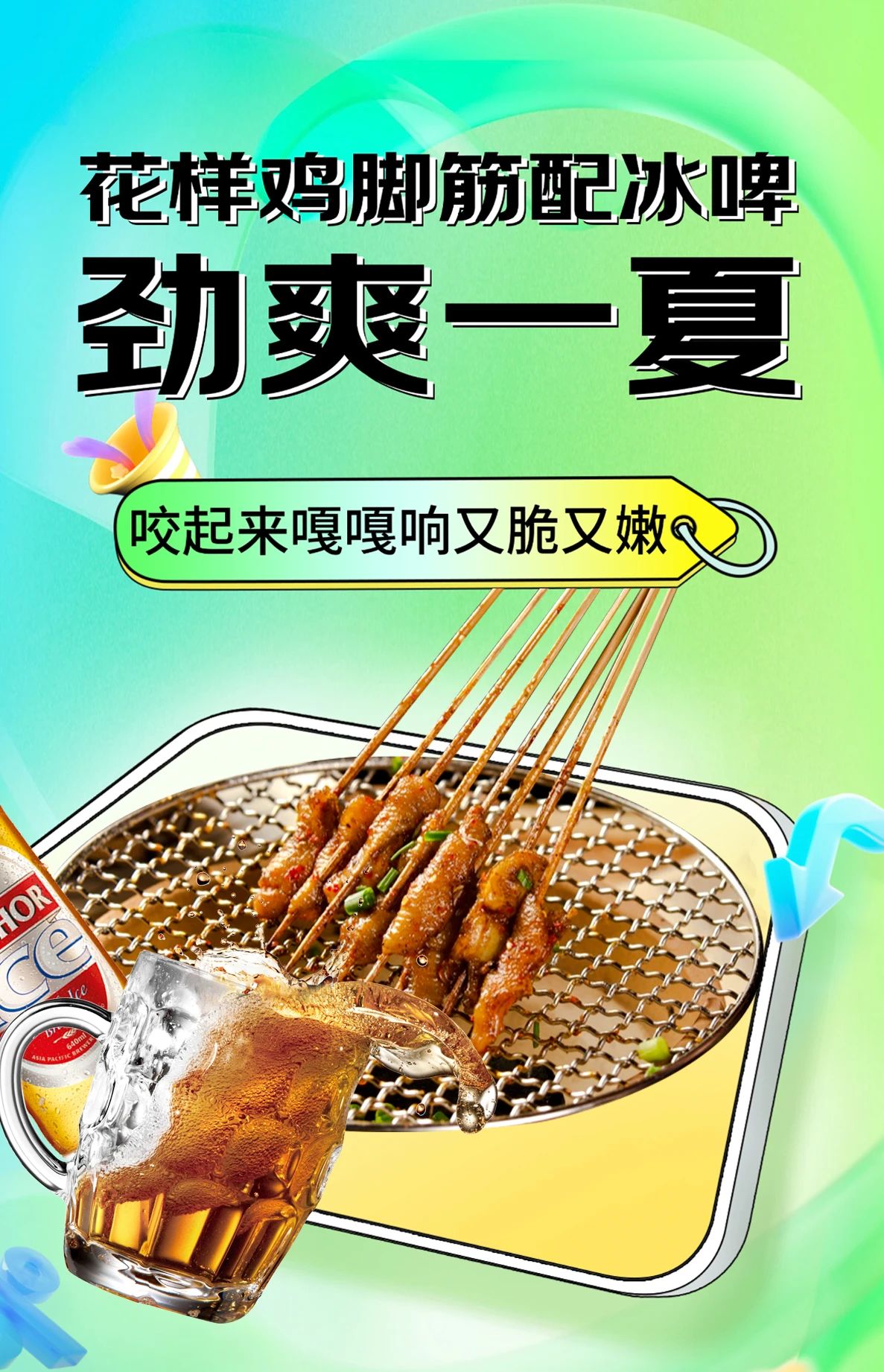 夏日炎炎,總想吃點(diǎn)涼爽夠味的。你有沒有試過雞腳筋配冰???雞腳筋這個(gè)名字一聽就很有嚼勁,可烤、燒、炒、拌,還可做冷鍋串串,妥妥冰啤好CP。花樣雞腳筋,具備夏日流量爆款潛質(zhì)。