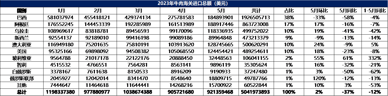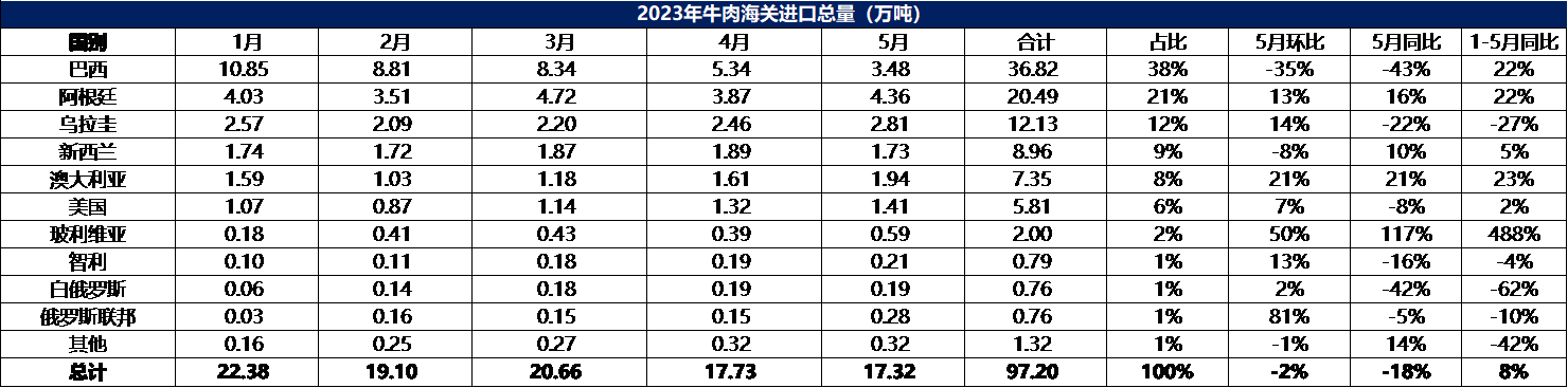 2023年5月冷凍牛肉進(jìn)口數(shù)據(jù)