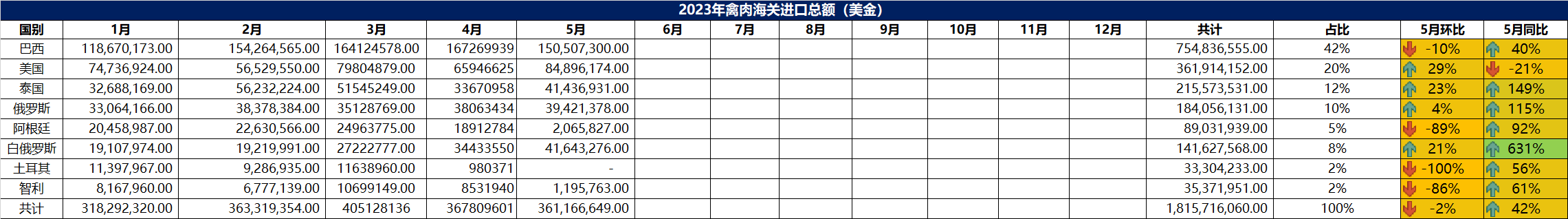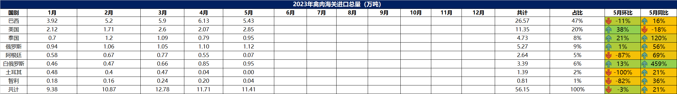 2023年5月冷凍禽肉進(jìn)口數(shù)據(jù)