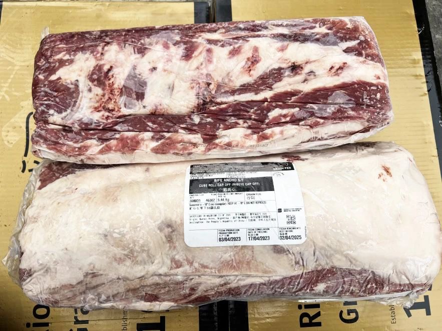 作為阿根廷技術(shù)最先進(jìn)的屠宰場,1920廠的自動化程度非常高,選取牛齡不超過2歲的小閹牛(95%都是黑安格斯牛),屠宰后的牛胴體經(jīng)過機(jī)器自動拍照分級,根據(jù)級別貼上不同標(biāo)簽,靜置24至48小時,待溫度達(dá)到4-7℃開始分割,分前中后三條分割線分割,包裝好的牛肉通過傳送帶自動分類,速凍48小時左右,然后傳送到冷庫。出庫時由機(jī)器把紙箱自動堆放到托盤上,纏繞裹膜后裝入集裝箱。工廠70%的產(chǎn)能用于出口,其中70%出口到中國,其他出口地為歐盟、中東地區(qū)、美國等。