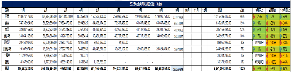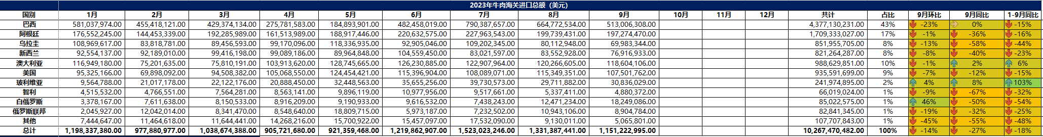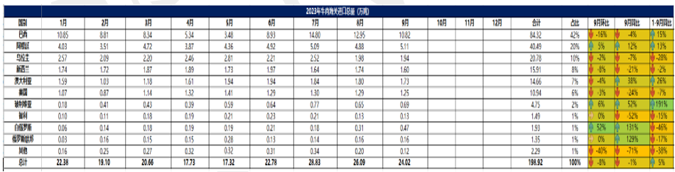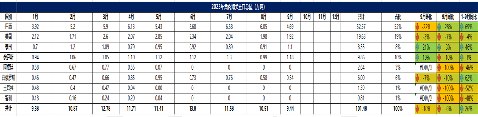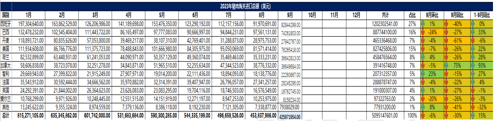 2023年9月冷凍豬牛禽肉海關進口數(shù)據(jù)