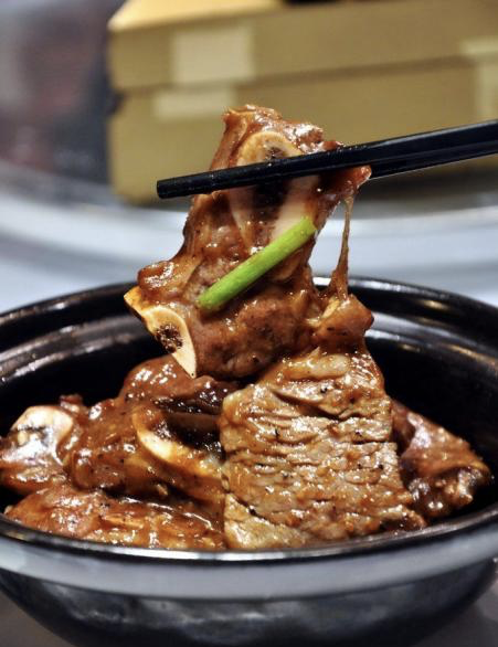 和牛排相比,牛仔骨更適合中國(guó)胃,運(yùn)用中式技法烹飪牛仔骨也頗為驚艷。牛仔骨嫩而不韌,醬汁裹著略帶奶香的牛肉在口中縈繞,中餐特有的調(diào)味令牛仔骨入味香濃,這便是經(jīng)典的黑椒牛仔骨的魅力。
