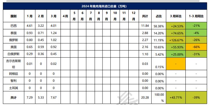 2024年1-3月冷凍禽肉進口概況