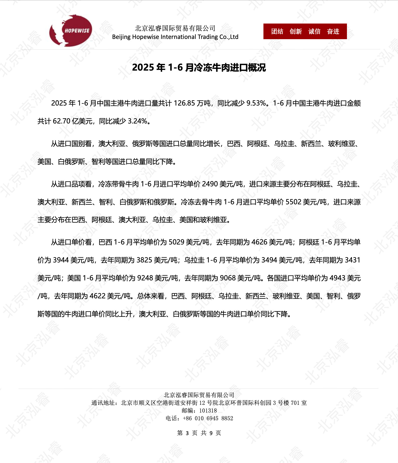 2025年1-6月冷凍豬牛禽肉海關(guān)進(jìn)口數(shù)據(jù)
