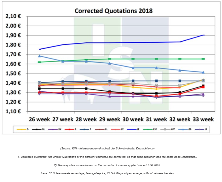 昨天,德國豬價上漲8歐分,荷蘭、比利時和奧地利的豬價也有比較明顯的上漲。丹麥小幅上漲3歐分。4周前,盡管待宰活豬數(shù)量缺少,德國豬價依然受屠企壓價壓力很大。
