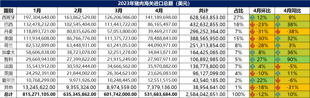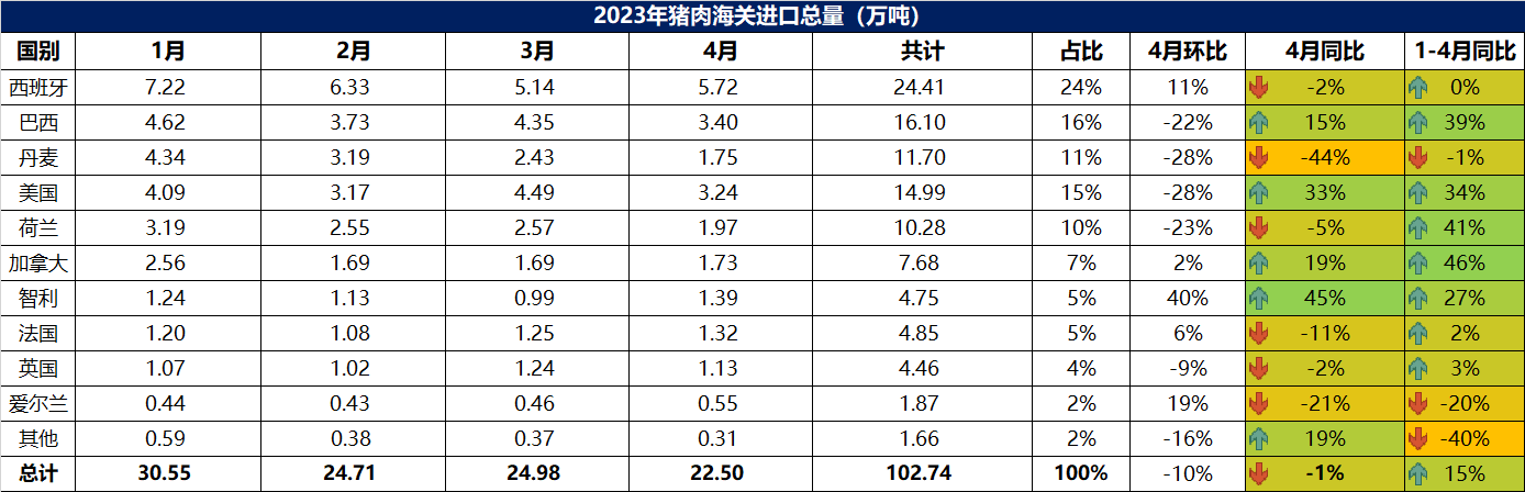 2023年4月冷凍豬肉進(jìn)口數(shù)據(jù)