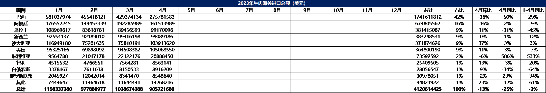 2023年4月冷凍牛肉進(jìn)口數(shù)據(jù)