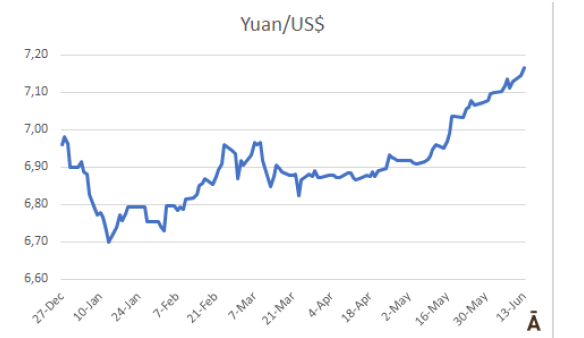 中國(guó)市場(chǎng)情況仍然不容樂觀。價(jià)格不知道何時(shí)會(huì)觸底,對(duì)于拐點(diǎn)何時(shí)到來仍有很大的不確定性。進(jìn)口牛肉市場(chǎng)持續(xù)下調(diào)。另一個(gè)使市場(chǎng)情況變得復(fù)雜化的因素是人民幣的貶值。人民幣在上周貶值0.7%,在過去五個(gè)月累計(jì)貶值6.9%,使進(jìn)口產(chǎn)品在成本更高。另一方面,央銀行宣布將短期利率從2.0%降至1.9%后,意味著政策性降息啟動(dòng),預(yù)計(jì)該趨勢(shì)將進(jìn)一步加劇。