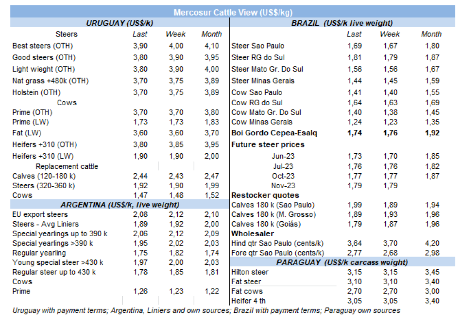 在該地區(qū)唯一一個(gè)價(jià)格沒有下降的國(guó)家是巴拉圭,那里的屠宰牛仍為$3.10/公斤。
