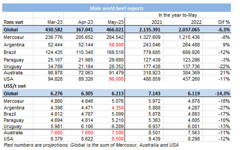 南方共同市場(chǎng)5月份向中國(guó)出口了約17.5萬(wàn)噸牛肉,比4月份多出近8萬(wàn)噸。反過來,來自大洋洲的出貨量為4萬(wàn)噸,是三年來最高的月度貨運(yùn)量,比4月份增加了6.5萬(wàn)噸。