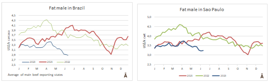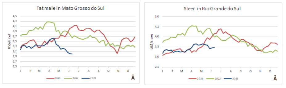 在圣保羅,中國(guó)牛已不再溢價(jià),但在其他幾個(gè)周仍保持在R$/@10-15的溢價(jià)。