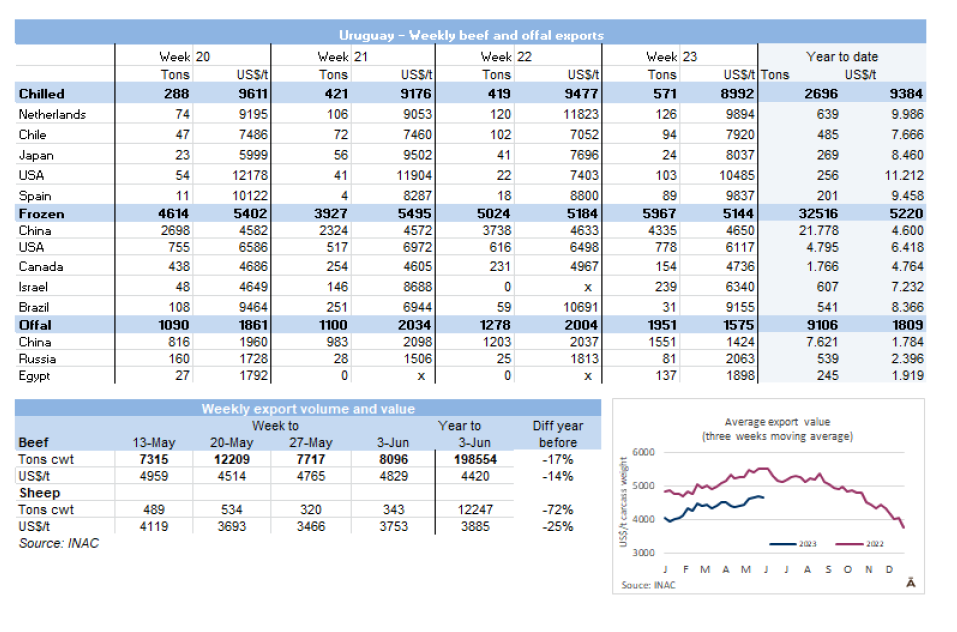 與該地區(qū)其他國(guó)家相比,烏拉圭簽訂運(yùn)往以色列的常規(guī)猶太屠宰合同的可能性一直很低,因?yàn)樾枰Ц遁^高的原料價(jià)格。然而在上周,一些進(jìn)口商完成了飼養(yǎng)牛的交易,因?yàn)閮?yōu)質(zhì)草食動(dòng)物的供應(yīng)非常有限。一位市場(chǎng)人士說他們正在談判,一些阿根廷工廠已經(jīng)停止了每噸$8000的FOB報(bào)價(jià)。