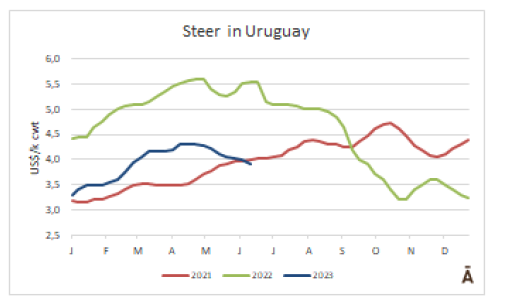 烏拉圭閹牛本周價(jià)格下降$0.10至$3.90/公斤。