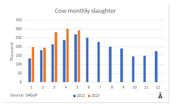 母牛屠宰量繼續(xù)增長(zhǎng),但與4月份相比有所下降