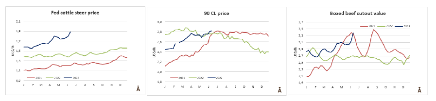 到目前為止,2023年有283.6萬(wàn)頭母牛被宰殺,占總數(shù)的47.2%。其屠宰量與2022年頭五個(gè)月相比增長(zhǎng)了22%,而母牛的屠宰量增長(zhǎng)了10%,與幼公牛的屠宰量相同。