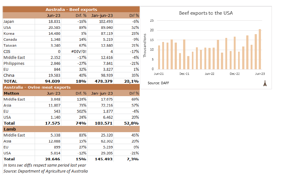 澳大利亞牛肉出口在6月份繼續(xù)其上升趨勢(shì)。農(nóng)業(yè)、漁業(yè)和林業(yè)部(DAFF)報(bào)告說(shuō),出貨量為94,009噸,比5月份多出2,500噸。