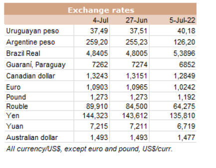 該地區(qū)屠宰用牛的價(jià)格上限和下限之間的差距繼續(xù)縮小。有最高價(jià)格記錄的阿根廷和烏拉圭保持著下行壓力,而巴拉圭和巴西的情況并非如此。