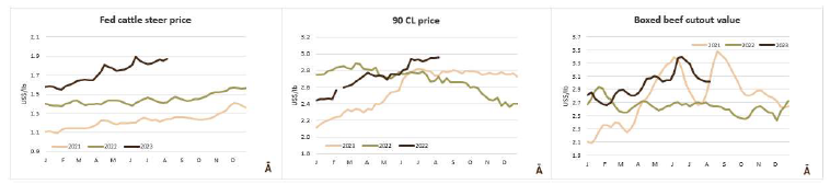 7月份對(duì)中國(guó)牛肉出口大幅下降,可以看出中國(guó)對(duì)牛肉需要的減弱。前一個(gè)月相比,降幅將在5至21萬(wàn)噸左右。大部分牛肉,尤其是來(lái)自南方共同市場(chǎng),將于8月中旬至9月中旬抵港。與上月相比,7月份巴西對(duì)中國(guó)的出口減少了4.3萬(wàn)噸,這是下降的主要原因。澳大利亞和烏拉圭的出口也有所下降,阿根廷的出口預(yù)計(jì)也出現(xiàn)了同樣的情況。美國(guó)農(nóng)業(yè)部預(yù)計(jì),中國(guó)今年將進(jìn)口350萬(wàn)噸牛肉,這意味著每月進(jìn)口量約22.7萬(wàn)噸牛肉,7月份的出口量低于這個(gè)數(shù)值。