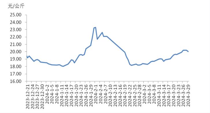 本周,四川豬肉周均價為每公斤19.24元,環(huán)比上漲1.5%,同比上漲5.9%,同比漲幅擴大3.7個百分點。周前期,川內(nèi)散養(yǎng)戶出欄生豬的節(jié)奏較穩(wěn)定,但豬源外調(diào)出川的數(shù)量增多,使得川內(nèi)生豬及豬肉供應(yīng)偏緊,疊加豬肉經(jīng)銷商積極采購,推動豬肉價格上漲。周后期,消費市場對高價豬肉需求量減少,客戶訂單量減少,豬肉價格小幅回落??傮w看,本周四川地區(qū)豬肉周均價環(huán)比小幅上漲。
