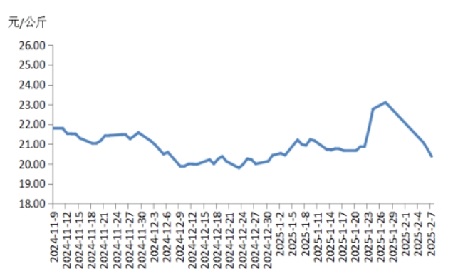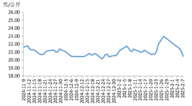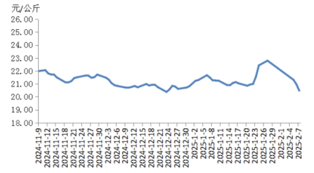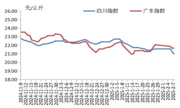 本周,廣東豬肉周均價(jià)為每公斤21.73元,環(huán)比上漲2.1%,同比上漲9.8%,較上周漲幅擴(kuò)大1.6個(gè)百分點(diǎn)。上周屠宰企業(yè)暫未開(kāi)工,豬肉供應(yīng)有限,屠宰企業(yè)有挺價(jià)情緒;同時(shí),外地返回廣東務(wù)工的人員尚未完全恢復(fù),廣東地區(qū)目前人流量相對(duì)較少,豬肉消費(fèi)暫時(shí)疲軟,使得豬肉價(jià)格較上周末小幅下跌后趨穩(wěn),仍高于上周均價(jià)。總體看,本周廣東地區(qū)豬肉周均價(jià)環(huán)比上漲。