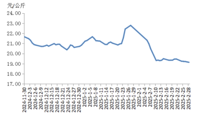 本周,廣東地區(qū)豬肉周均價為每公斤21.21元,環(huán)比下跌0.4%,同比上漲10.3%,較上周漲幅擴大1.7個百分點。周前期,豬肉市場供需較為平穩(wěn),價格以穩(wěn)為主;周后期,受周邊市場生豬價格行情偏弱影響,本地區(qū)散養(yǎng)戶出欄積極提升,疊加豬肉消費疲軟,經(jīng)銷商多壓價收購,帶動豬肉價格微跌。