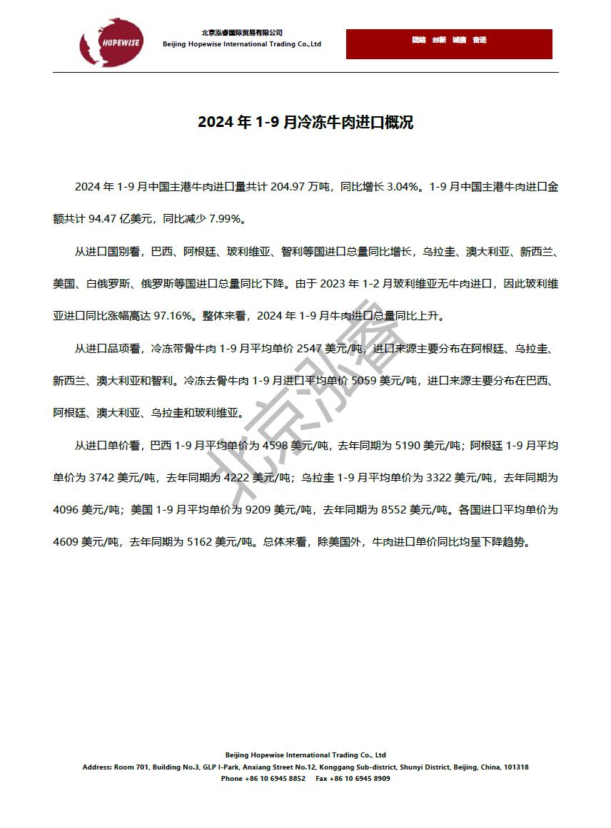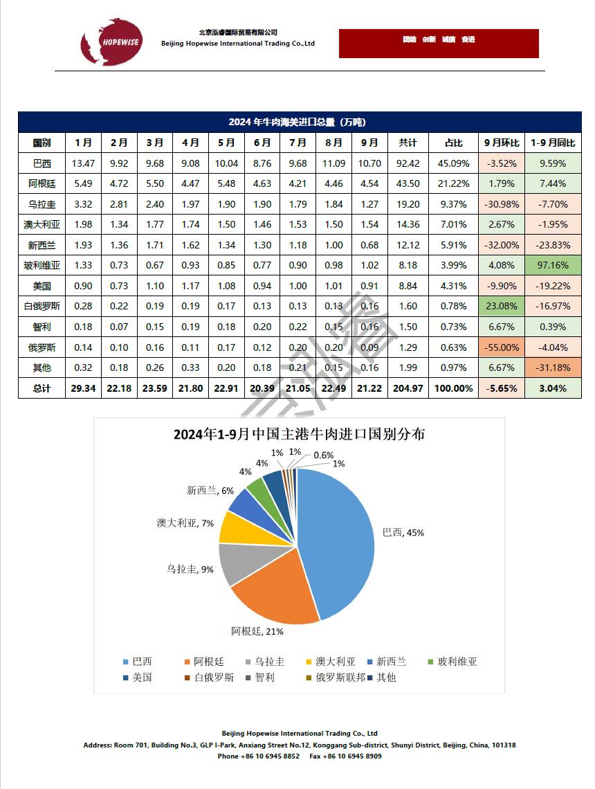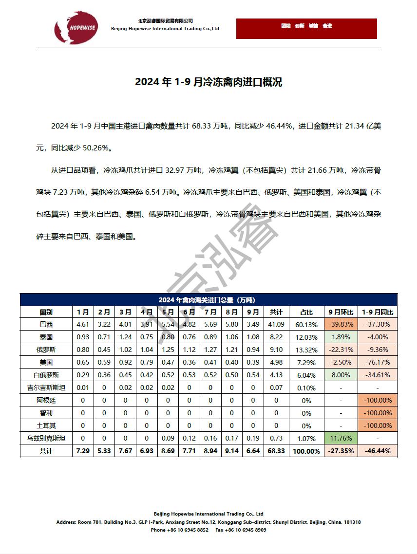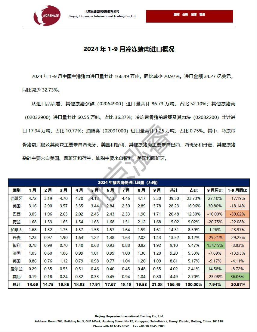 2024年1-9月冷凍豬牛禽肉海關(guān)進(jìn)口數(shù)據(jù)