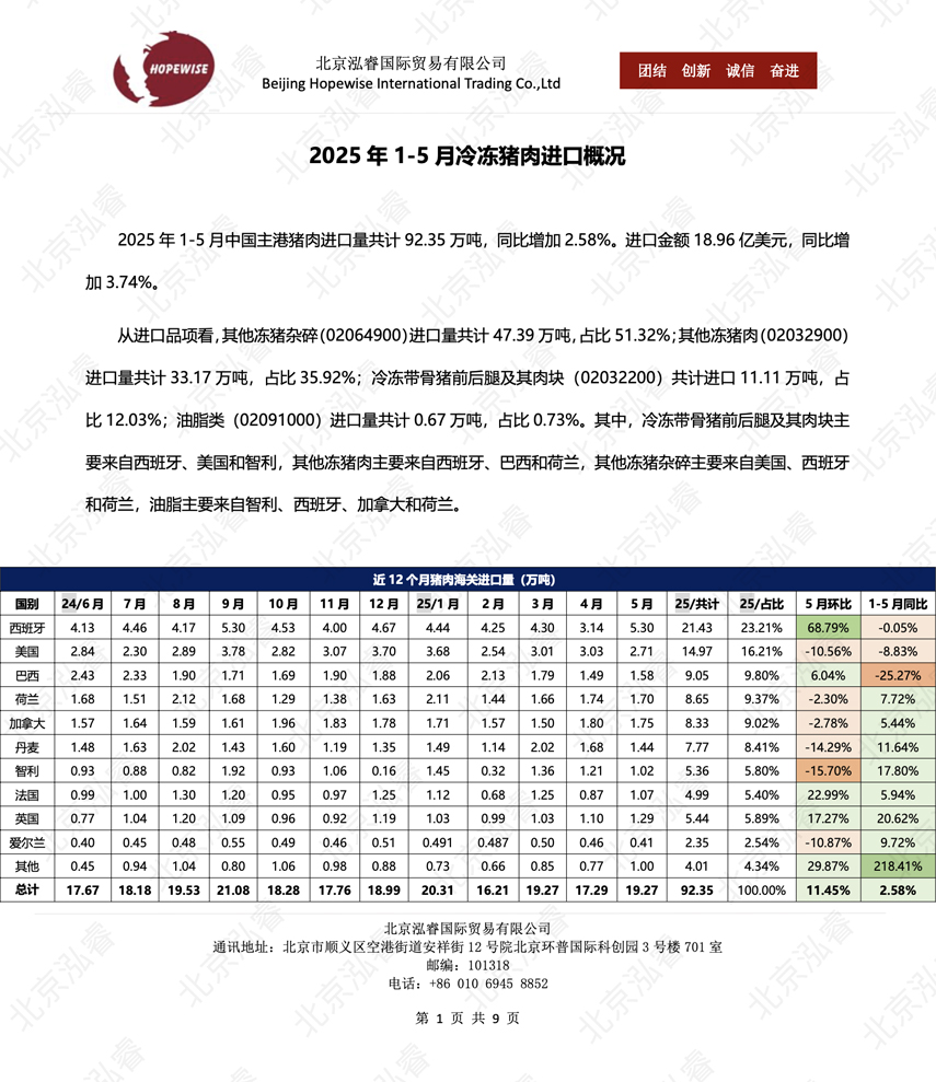 2025年1-5月冷凍豬牛禽肉海關(guān)進(jìn)口數(shù)據(jù)