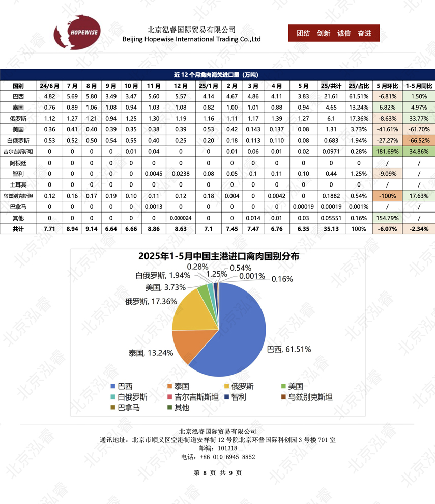 2025年1-6月冷凍豬牛禽肉海關(guān)進(jìn)口數(shù)據(jù)