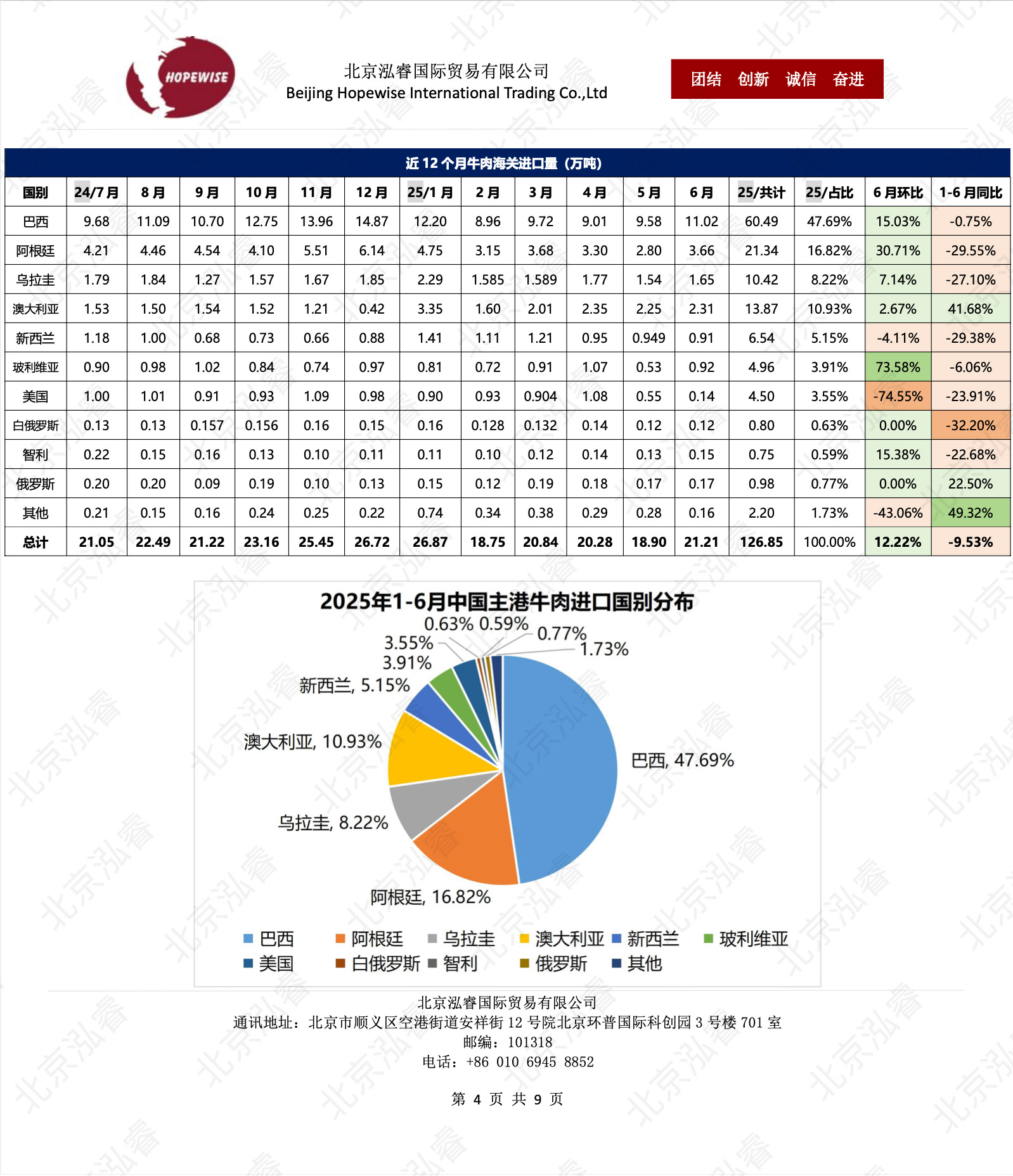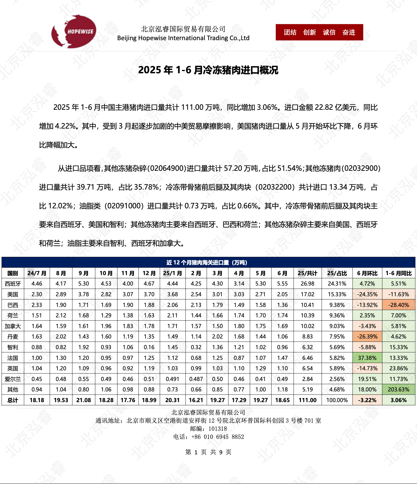 2025年1-6月冷凍豬牛禽肉海關(guān)進(jìn)口數(shù)據(jù)