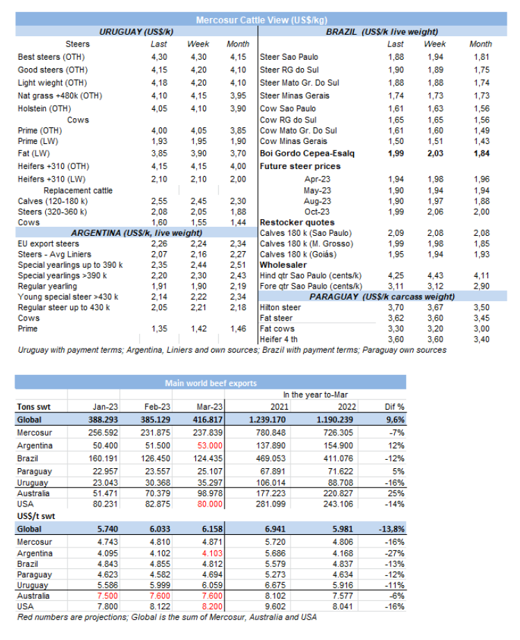 在巴拉圭,用于屠宰的雄魚本周從2美分上漲至3.62美元,而在烏拉圭,特殊牛種則保持穩(wěn)定在4.30美元每公斤。
